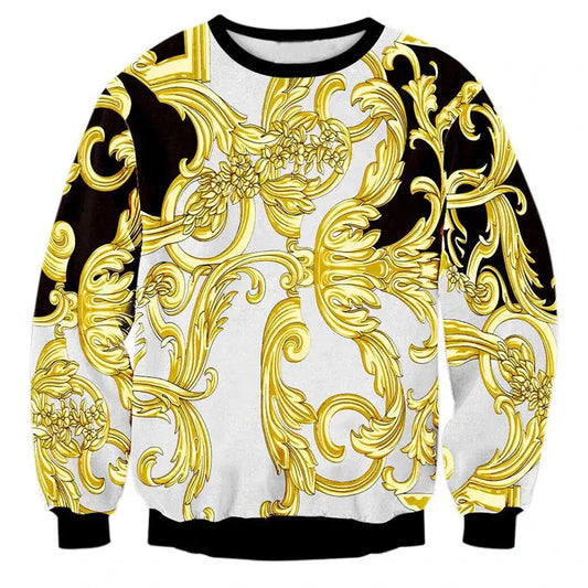 High-End Luxury Golden Palace Flowers 3D Print Sweatshirts Men Streetwear Hoodies Boys White Outwear Clothes Mans Fashion Tops