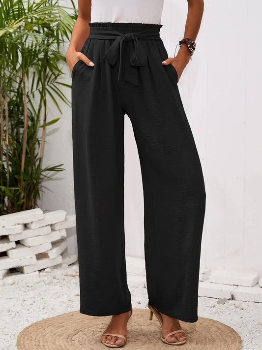 Women'S Wide Leg Pants with Pockets High Waist Adjustable Knot Loose Casual Trousers Business Work Casual Pants