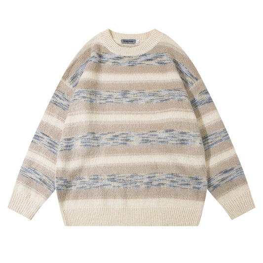 New Men's Striped Cardigan Single-breasted Long Sleeve Color Matching Casual Sweater