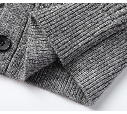 Twist Jacquard Lapel Sweater Cardigan Men's Outer WearTrends Fashion Slim Knit Top Coat