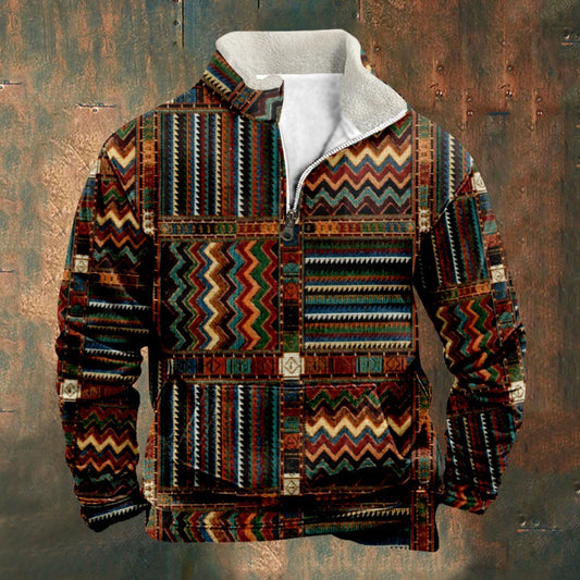 Tribal Pattern Peripheral 3D Digital Printing Casual Stand Collar Half Zipped Round Neck Bathroom