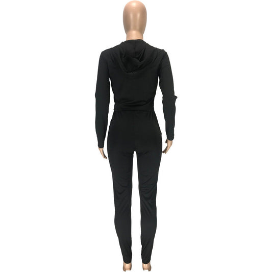 Women's Casual Tight Sportswear Multi-pocket Overalls With Coat And Cap Suit Pants