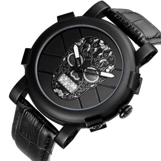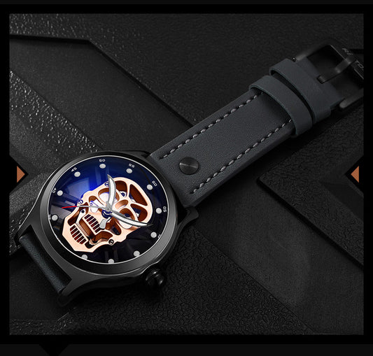SKONE Pirate Skeleton Skull Quartz Men Watches Luxury Waterproof Leather Men Sports Watch