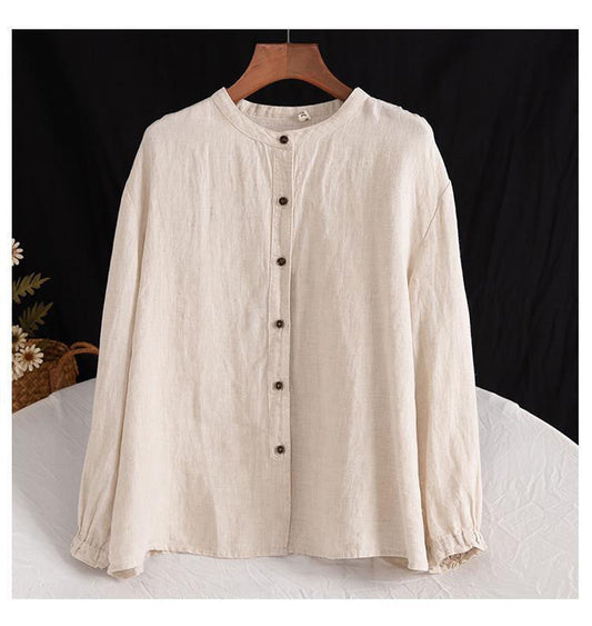 Solid Color Casual Loose Long Sleeve Linen Shirt