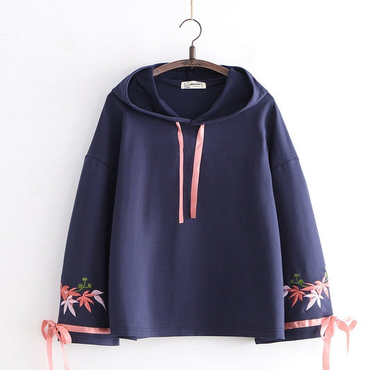 Women's Floral Embroidery Hooded Flare Sleeve Hoodies Sweatshirts Casual Pullovers